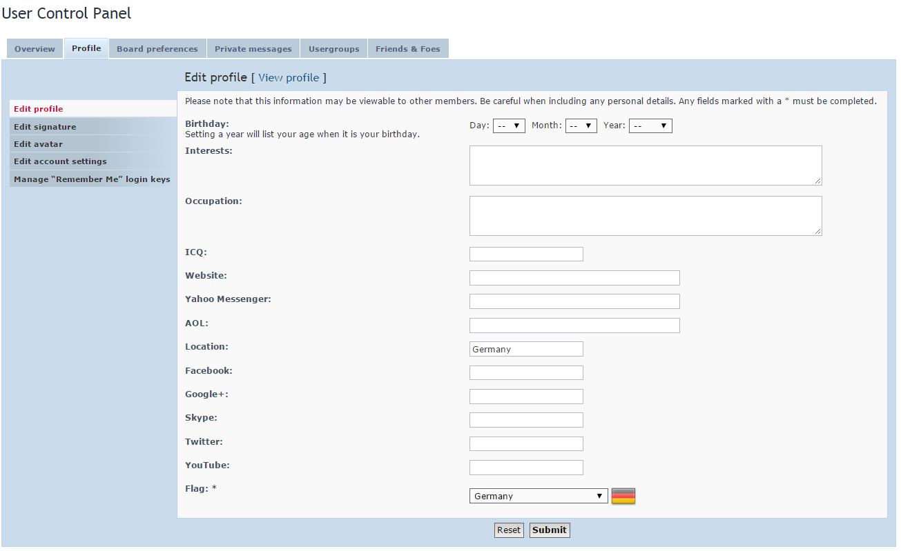 • Also you now have the ability to select your national flag in your user control panel: